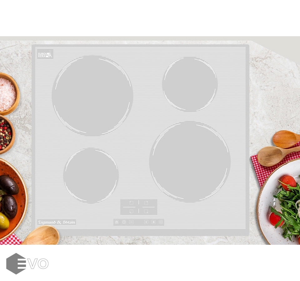 Керамическая поверхность Zigmund & Shtain CI 32.6 W выполнена в белом цвете и имеет ширину 60 см, что позволяет утверждать она подойдет для кухни любого дизайна и обстановки. Сенсорное управление вынесено на фронтальную часть поверхности. Здесь размещается и цифровая индикация работы четырех нагревательных элементов работающих с мощностью: 1200/1500; 1200/1500; 2300/2600; 2300/2600 Вт. Общая мощность: 7000 Вт. Модель способна работать в 9 режимах нагрева, оборудована таймером для каждой зоны. Если вы прекратили работу, но тут же решили снова поставить кастрюлю на огонь, индикатор остаточного тепла покажет, какая из конфорок еще не остыла. Индукционную варочную панель Zigmund & Shtain CI 32.6 W автоматически защищает себя от перелива и перегрева, а вас и вашу семью от нечаянного старта и включения поверхности детьми.