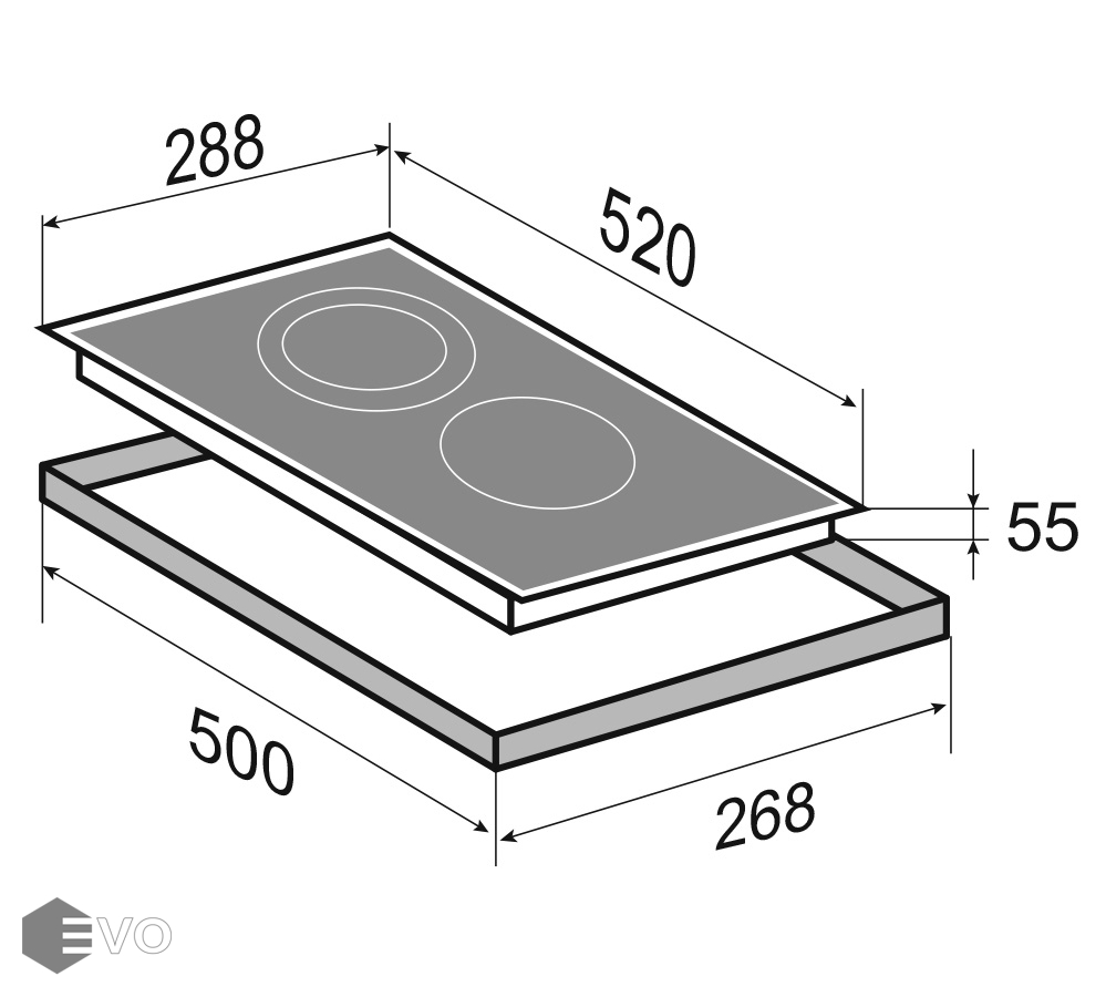 Размеры встраивания (ВхШхГ), мм: 55х268х500
