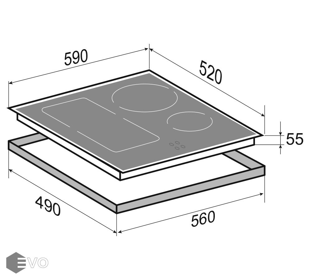 | Размеры встраивания (ВхШхГ), мм: | 55х560х490 |