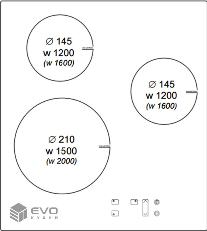 - Мощность горелок, Вт: 1200/1600; 1200/1600; 1500/2000