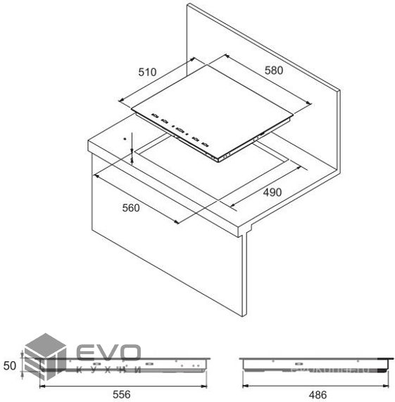 Размеры встраивания (ВхШхГ), мм: | 40х560х490 |