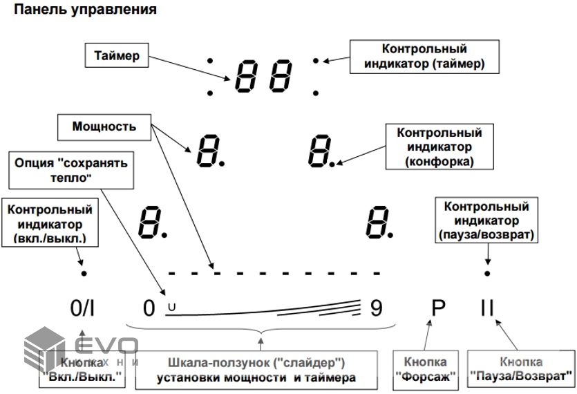 - Таймер: 3 типа для каждой конфорки, с автоматическим отключением