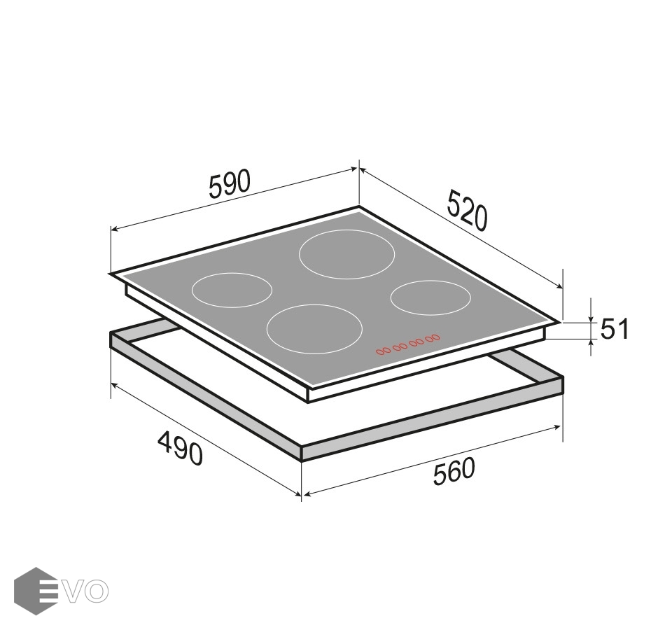 Размеры встраивания (ВхШхГ), мм: 51х560х490