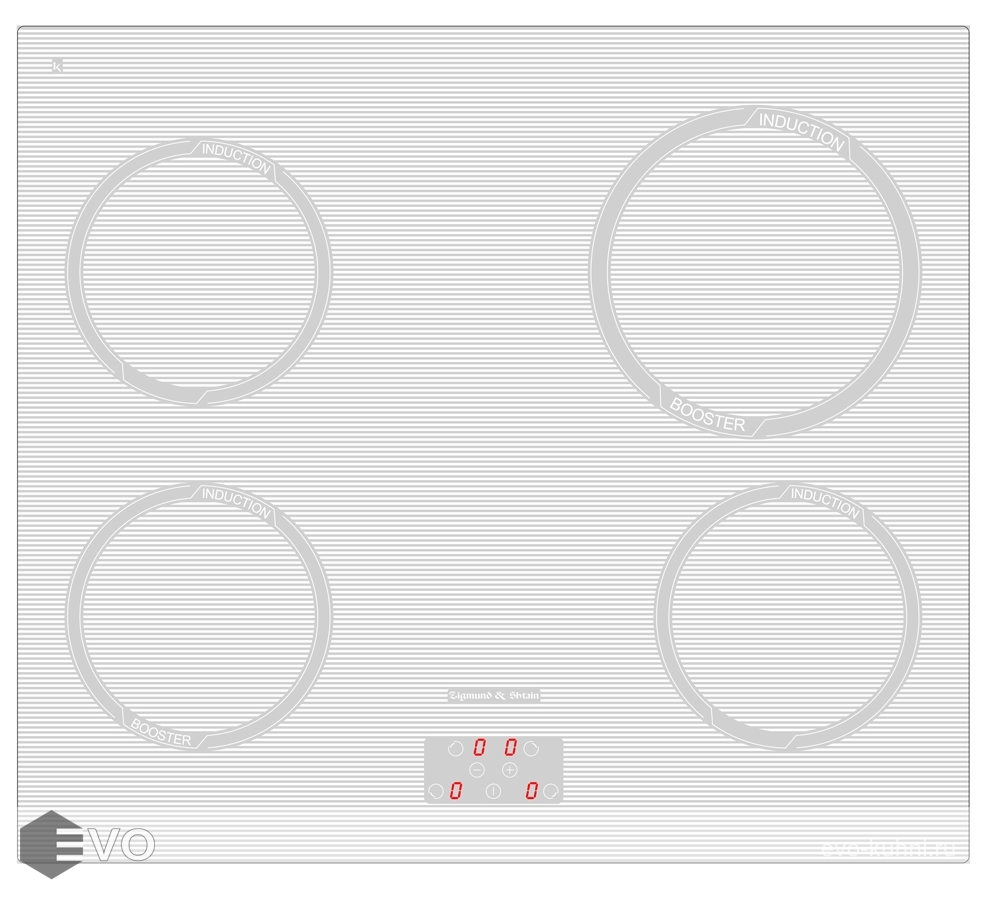 Индукционная варочная поверхность Zigmund & Shtain CIS 299.60 WX из белой стеклокерамики предназначена для независимой установки на кухне. Это значит, что разместить ее можно отдельно от духового шкафа. Состоит варочная поверхность из 4 конфорок диаметром 16 и 20 см. Две из них имеют опцию экспресс-нагрева – готовить на них можно начинать, едва включив прибор. Индуктор модели включается циклически, поэтому за то, что пища пригорит, можно не переживать.