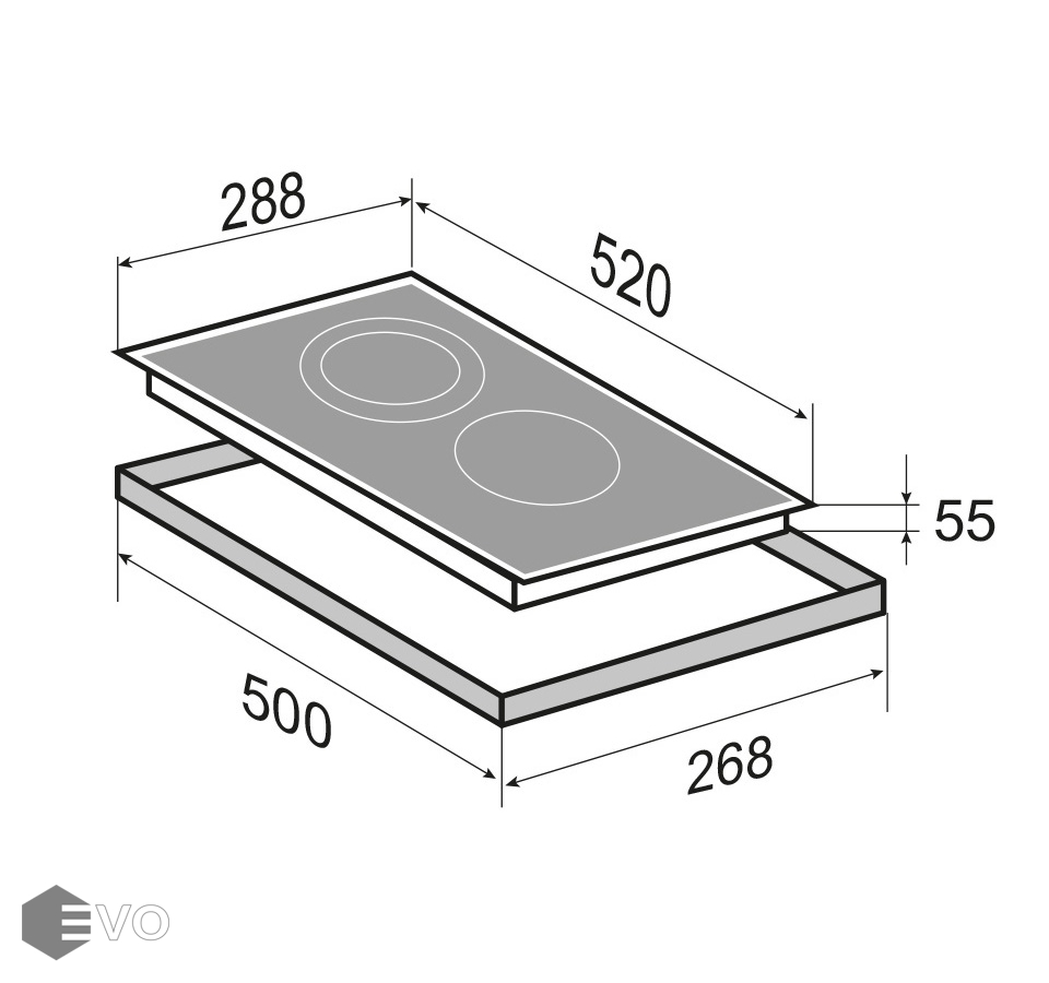 Размеры встраивания (ВхШхГ), мм: 55х268х500