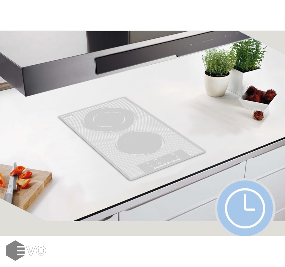 Верхняя панель изготовлена из стеклокерамики в элегантном белом цвете. Этот материал обеспечивает стильный внешний вид и характеризуется практичностью. Система защиты от перегрева и функция блокировки от детей обеспечивают максимально безопасную эксплуатацию прибора. Встраиваемая варочная поверхность Zigmund & Shtain CN 36.3 W легко управляется с помощью сенсорных кнопок.