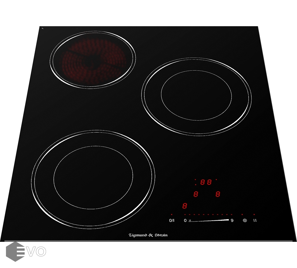 Электрическая варочная панель Zigmund & Shtain CNS 139.45 BX даст вам шанс использовать минимум свободного места с оптимальной пользой. Сама панель имеет 3 конфорки, причем они расположены так, что площадь самой поверхности минимальна. 2 из этих конфорок имеют зону расширения, которая при необходимости активируется простым нажатием на панель. Само управление простое, интуитивно понятное. Это позволит избежать затруднения у пользователей. Наличие нескольких систем защиты панели и человека в работе делает Zigmund & Shtain CNS 139.45 BX одним из самых безопасных и надежных вариантов стеклокерамических панелей.