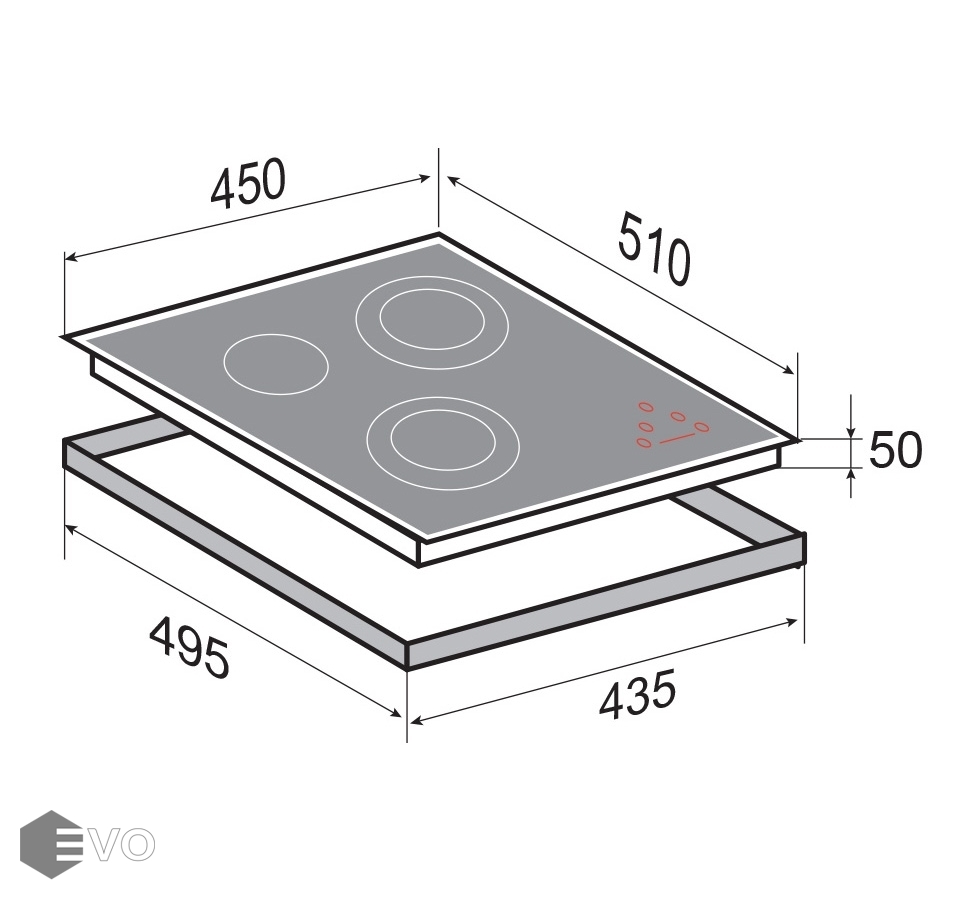| Размеры встраивания (ВхШхГ), мм: | 50х435х495 |