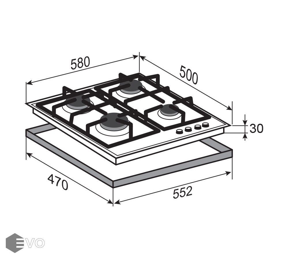 Размеры встраивания (ВхШхГ), мм: | 30х552х470 |