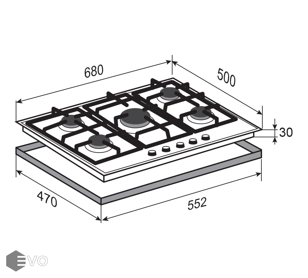 Размеры встраивания (ВхШхГ), мм: 30х552х470