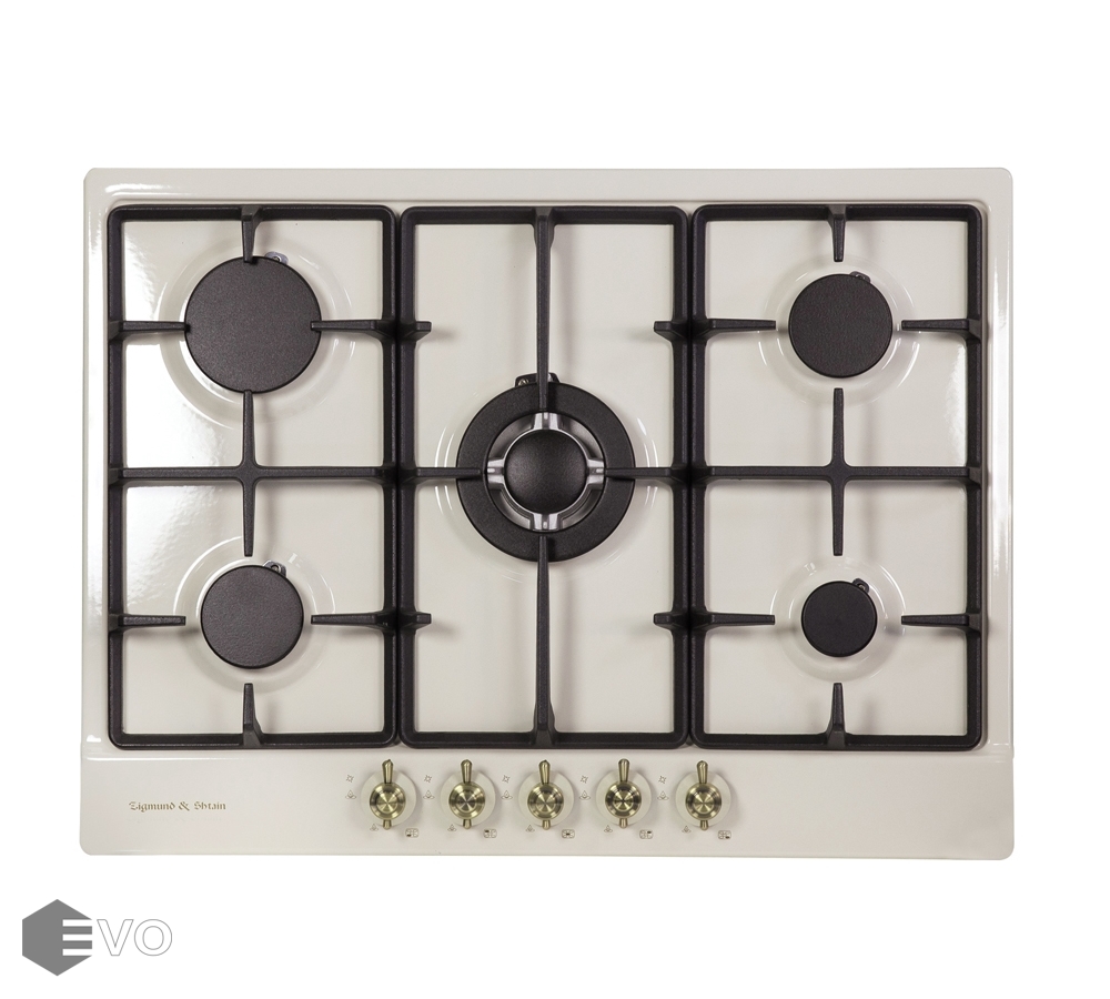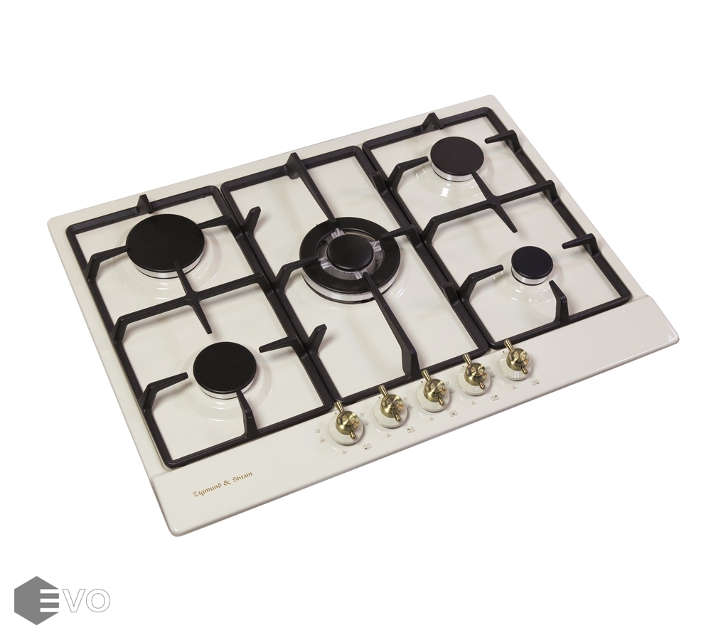 Газовая варочная поверхность Zigmund & Shtain G 12.7 X представлена в бежевом цвете, и по своему внешнему исполнению отлично впишется в стиль «кантри». Этому способствует оригинальная форма поворотных переключателей, с помощью которых удобно включать нужную конфорку и регулировать мощность пламени в ней. В каждом переключателе имеется механизм активации электроподжига, благодаря которому можно зажечь пламя в конфорке без спичек. Панель варочной поверхности выполнена из эмалированной стали, что позволяет легко очищать ее от загрязнений.