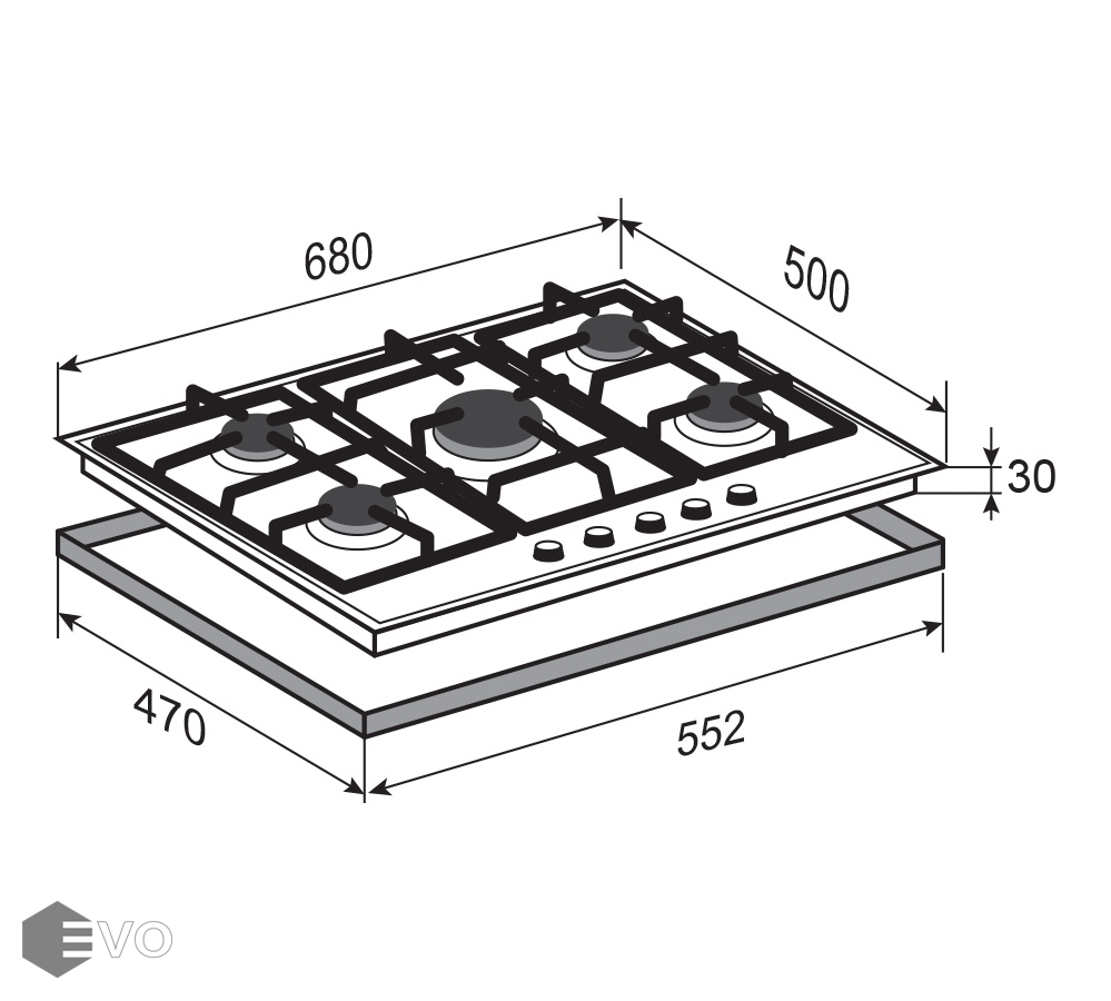 Размеры встраивания (ВхШхГ), мм: | 30х552х470 |