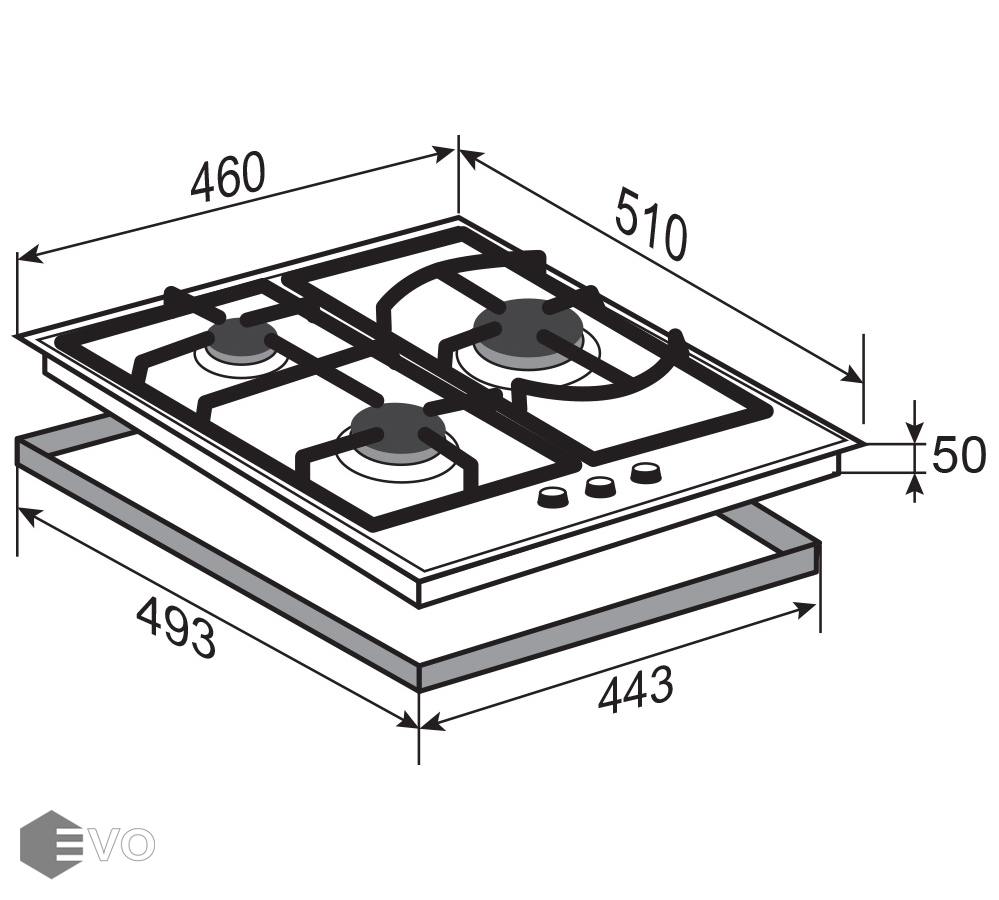 Встраиваемая варочная панель с тремя газовыми конфорками. Электроподжиг встроен в переключатели. WOK-горелка мощностью 3800 Вт. Каждая конфорка оснащена устройством контроля наличия пламени (газконтроль), которое останавливает подачу газа в случае исчезновения пламени.