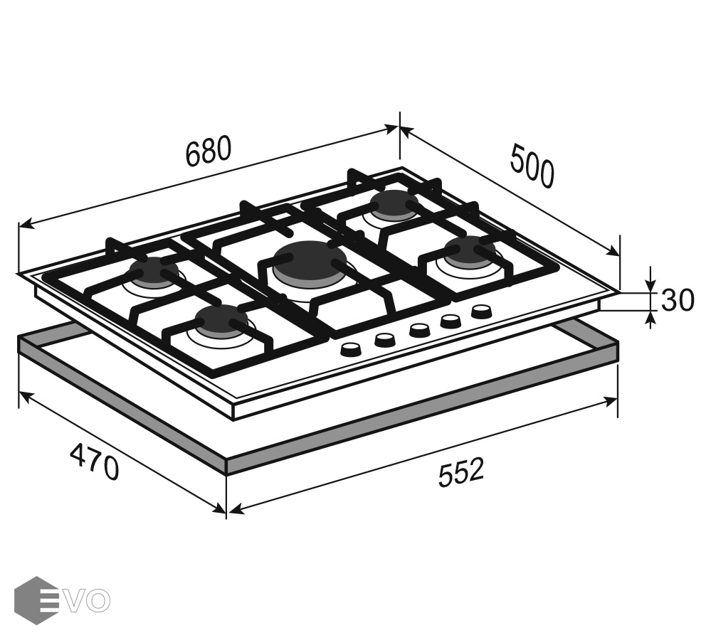 Размеры встраивания (ВхШхГ), мм: | 30х552х470 |