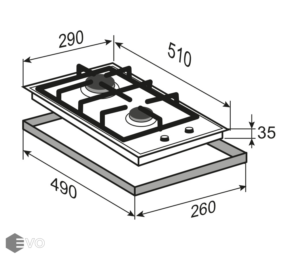 Размеры встраивания (ВхШхГ), мм: 35х260x490