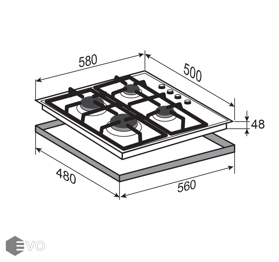 - Мощность горелок, Вт: 3300; 1600; 1600; 1000