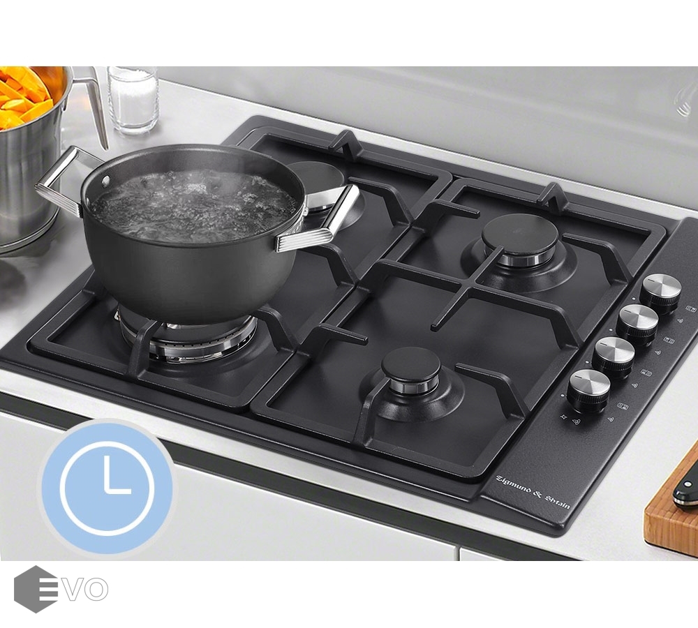 У газовой варочной поверхности Zigmund & Shtain GN 98.61 B приятный дизайн. Она выполнена в черном цвете и дополняется серебристыми поворотными механизмами. В интерьере кухни панель смотрится превосходно! Варочная поверхность Zigmund & Shtain GN 98.61 B имеет функцию Газ-контроль. Когда пламя в горелках гаснет, подача газа выключается. Столь простая функция повышает безопасность оборудования и предотвращает утечку топлива.