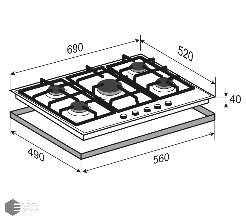 Размеры встраивания (ВхШхГ), мм: | 40х560х490 |