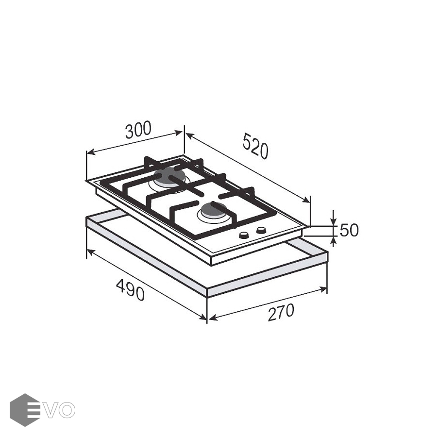 Размеры встраивания (ВхШхГ), мм: 50х270х490