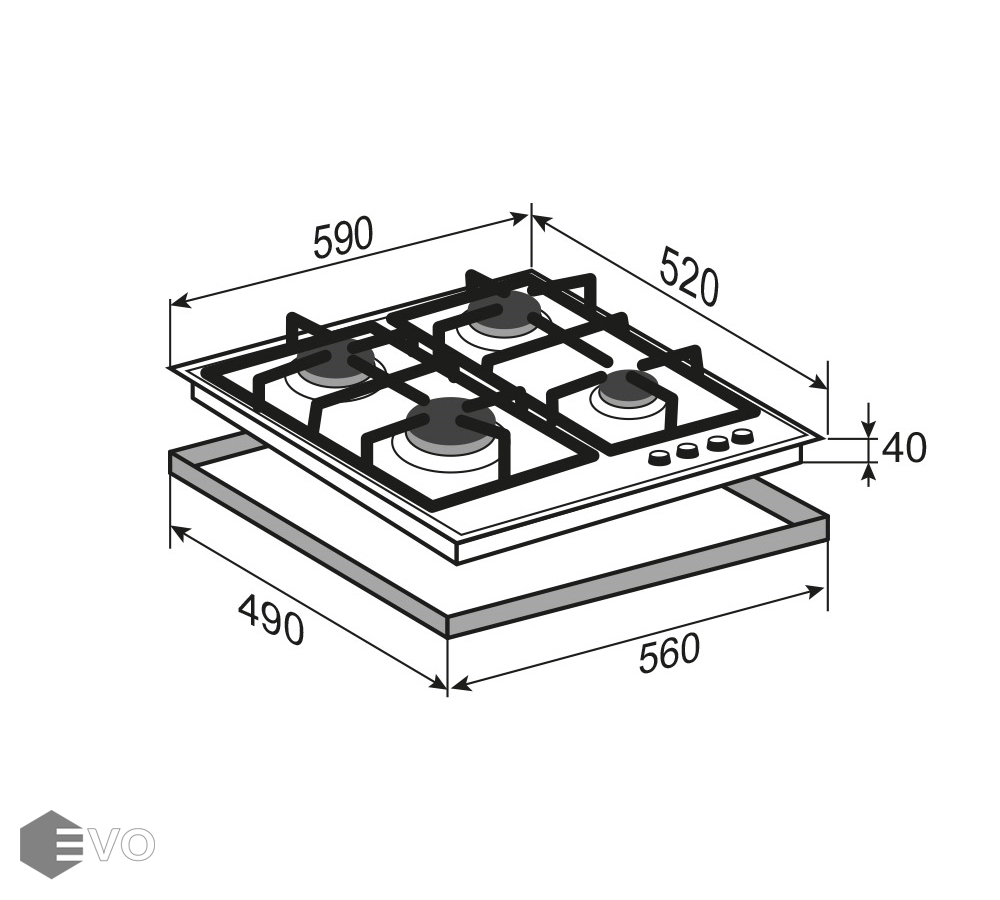 Размеры встраивания (ВхШхГ), мм: | 40х560х490 |