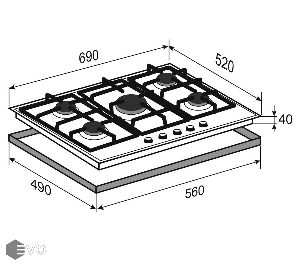 Размеры встраивания (ВхШхГ), мм: 40х560х490