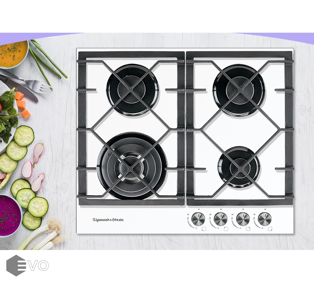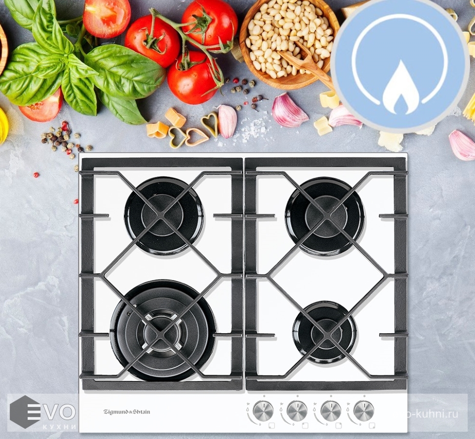 Газовая варочная поверхность Zigmund & Shtain MN 175.61 W представляет собой панель из белого закаленного стекла, на которой размещены разные по размеру конфорки (4 шт) и поворотные переключатели. Мощность пламени в каждой конфорке разная, что позволит выбирать оптимальную для приготовления того или иного блюда. Имеется конфорка «Двойная корона», в которой пламя горит в два ряда. Она подходит для быстрого кипячения воды, варки холодца и других блюд, требующих временных затрат. Две съемных чугунных решетки позволят удобно и устойчиво размещать на них кастрюли.