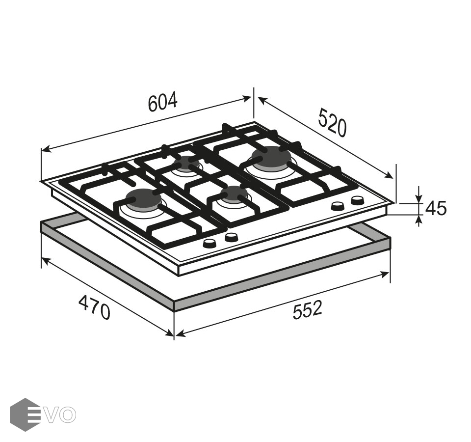Размеры встраивания (ВхШхГ), мм: 45х552х470