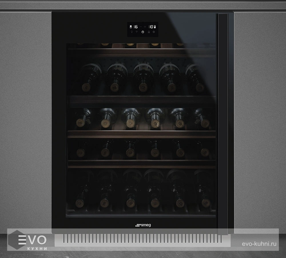 Винный шкаф Smeg CVI638LWN3 –шкаф рассчитан на хранение 38 винных бутылок стандартного объема 0,75 литра. В этом оборудовании предусмотрена каждая мелочь – воздух вентилируется, очищается через угольные фильтры, температура контролируется термостатом, стекло защищено покрытием от попадания солнечных лучей.