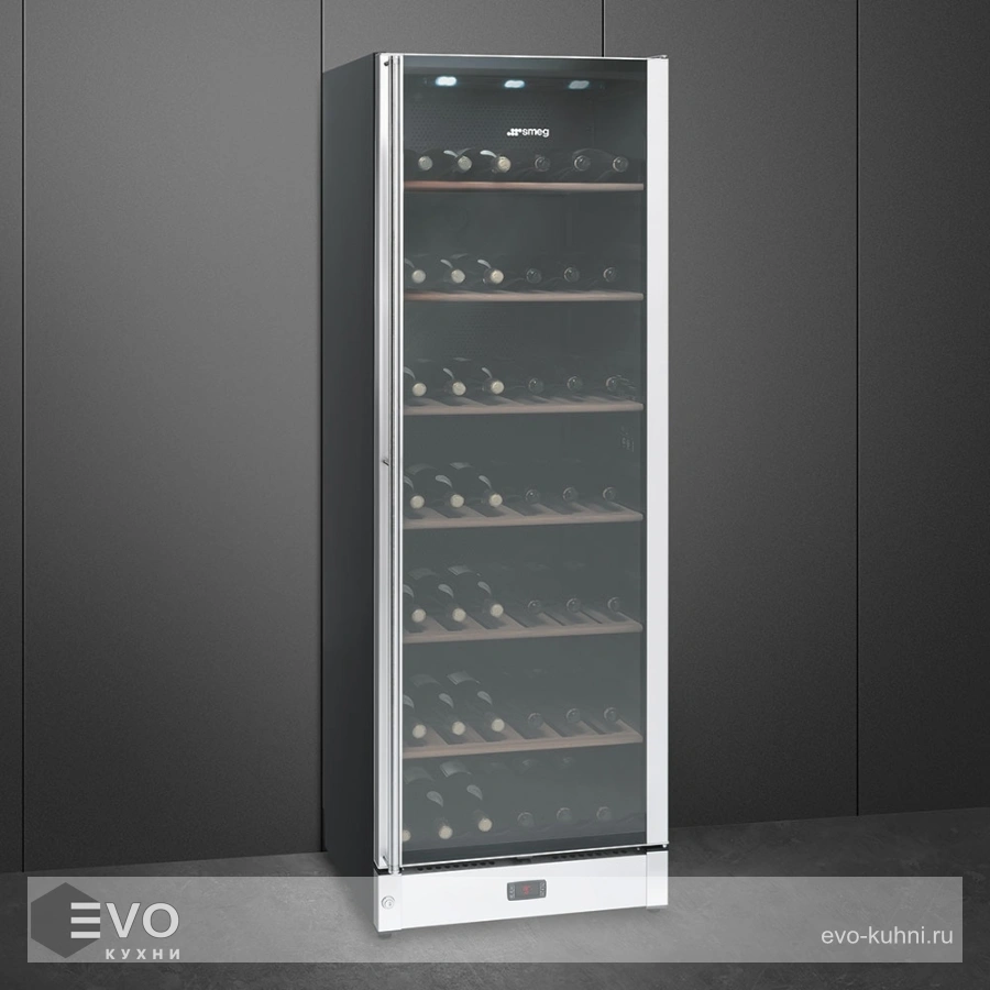 Винный шкаф Smeg SCV115A – отдельностоящий винный холодильник высотой 186 см отличается вместимостью и способен охладить одновременно 198 бутылок типа Бордо (0,75 л). Широкий диапазон температур (6-22℃) позволяет поддерживать оптимальный температурный режим, а следить за показателями поможет дисплей.