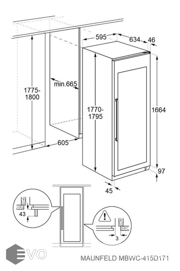 | Размеры встраивания (ВхШхГ), мм: | 1775-1800х605х665 |