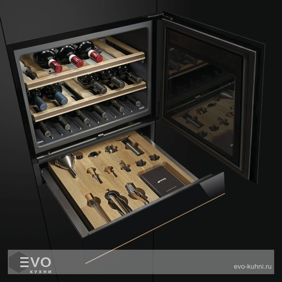 Ящик сомелье Smeg CPS115N – предназначен для установки в винные шкафы 45см. и оборудован системой Push, которая позволяет открыть крышку легким нажатием. Все аксессуары хранятся в деревянном футляре, который выполнен из скального дуба.