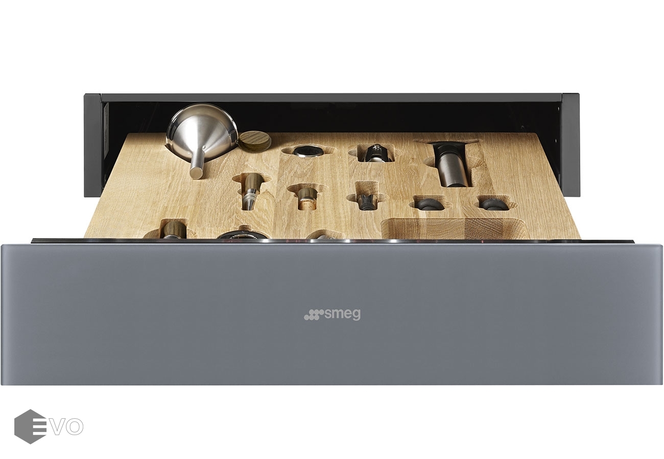 Ящик сомелье Smeg CPS115S – предназначен для установки в винные шкафы 45см. и оборудован системой Push, которая позволяет открыть крышку легким нажатием. Все аксессуары хранятся в деревянном футляре, который выполнен из скального дуба.