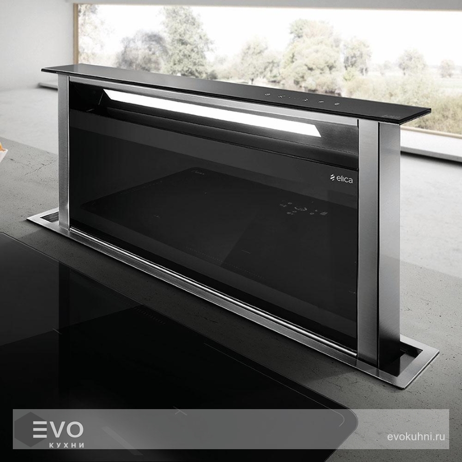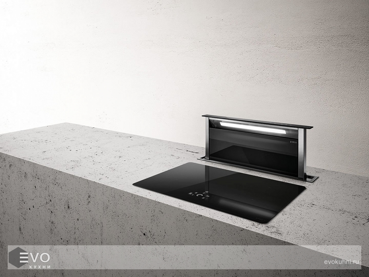 Встраиваемая в столешницу вытяжка ELICA ADAGIO GME BL/A/90 — идеальное сочетание внешней эстетики и инноваций. В выдвижной панели органично сочетаются нержавеющая сталь и черное стекло.