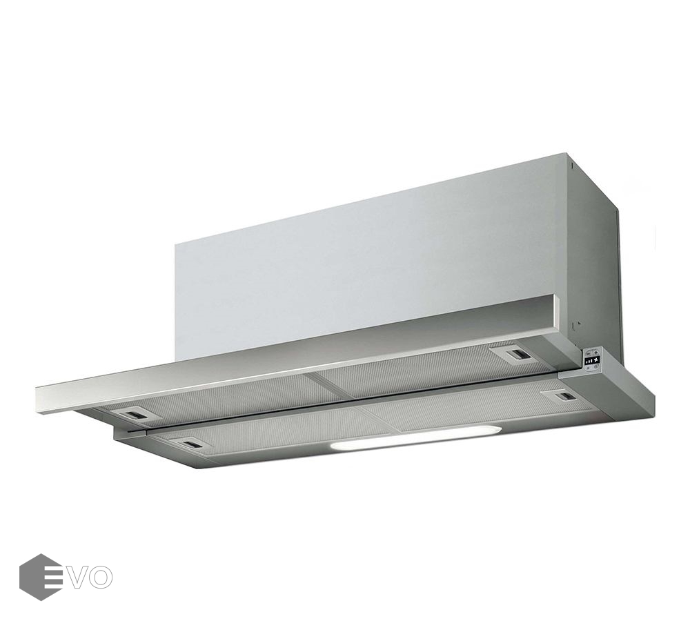 Устройство включается путем выдвижения передней панели. Сенсорные переключатели гарантируют удобное управление тремя основными и одной интенсивной скоростями. Модель может работать в двух режимах: отвод и рециркуляция.