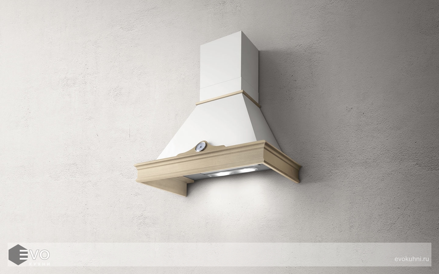 Классическая купольная вытяжка ELICA ORETTA WH/A/90 FRASSINO шириной 90 см выполнена в стиле кантри. Своеобразный дизайн позволяет интегрировать вытяжку в классический интерьер или на кухню в стиле «прованс». Модель кремового цвета дополнена рамкой из натурального дерева со стилизованными часами.