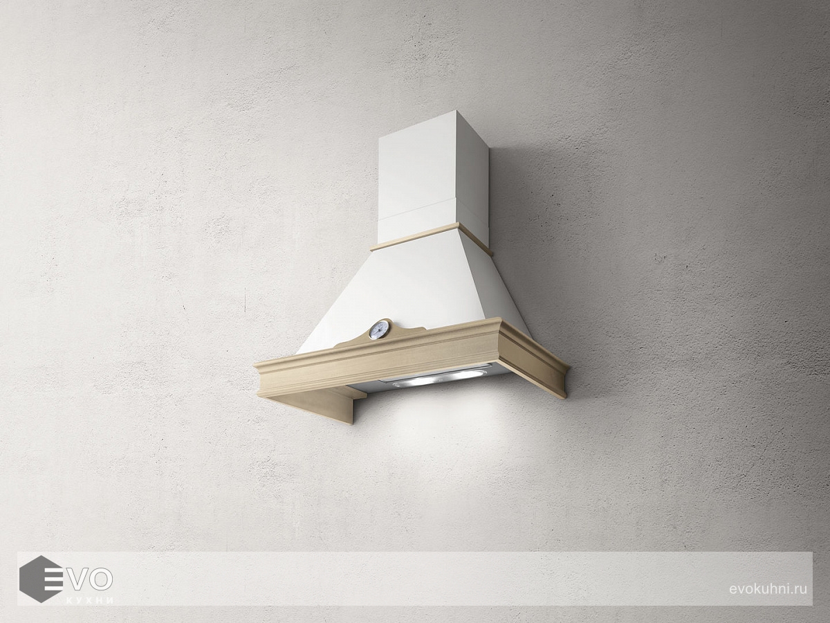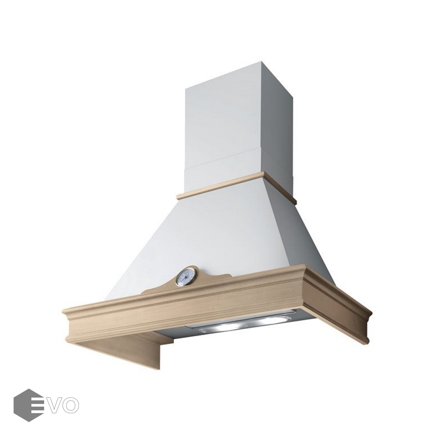 Классическая купольная вытяжка ELICA ORETTA WH/A/90 T.GREZZO шириной 90 см выполнена в стиле кантри. Модель белого цвета дополнена рамкой из натурального дерева со стилизованными часами. Своеобразный дизайн позволяет интегрировать вытяжку в классический интерьер или на кухню в стиле «прованс».