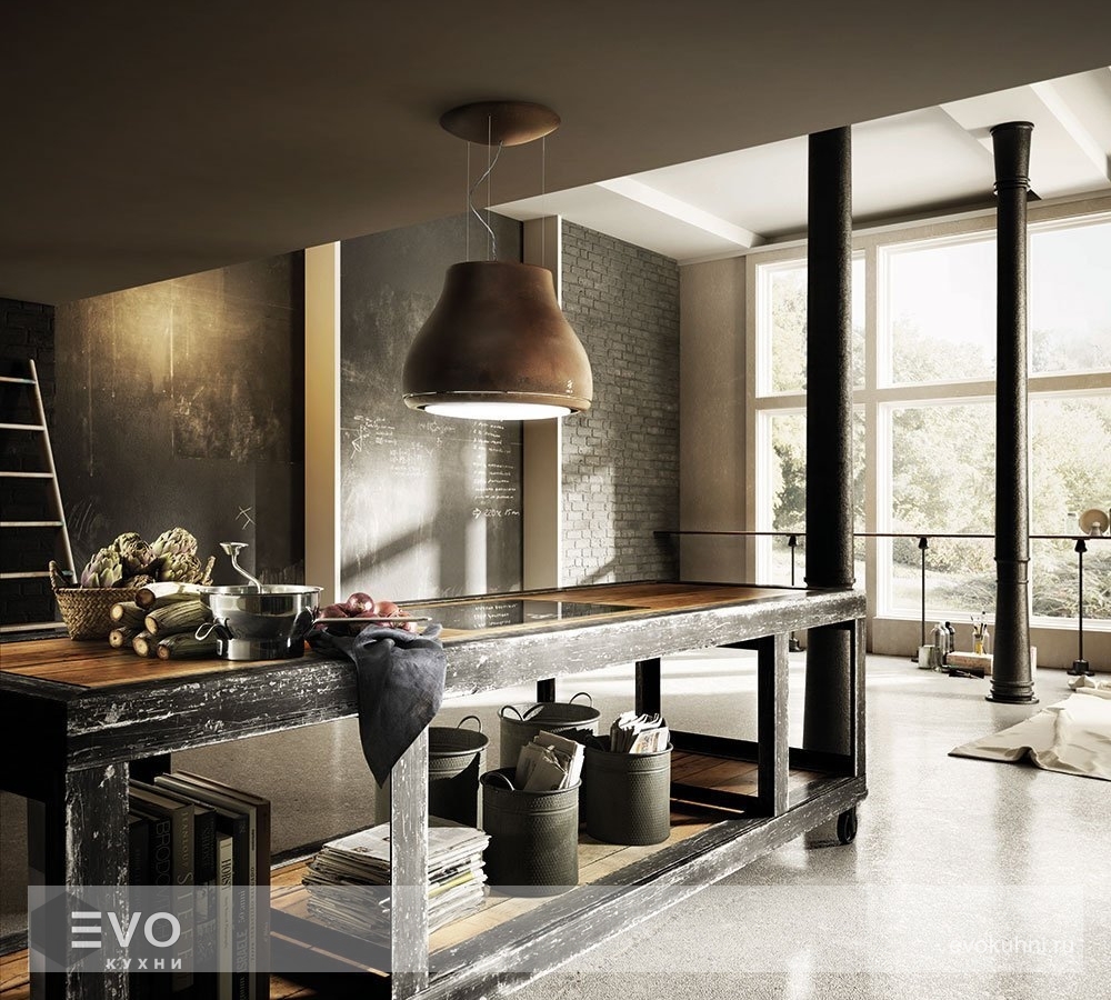 Подвесная вытяжка-люстра ELICA SHINING RUST/F/50 выполнена в цвете «состаренная медь». Модель великолепно вписывается как в классический, так и в современный интерьер в стиле хай-тек или лофт. На нижней кромке расположена панель управления, все функции которой включаются и с пульта ДУ. Потолочный монтаж позволяет повесить вытяжку над кухонным островом, но также существует возможность установки на стену.