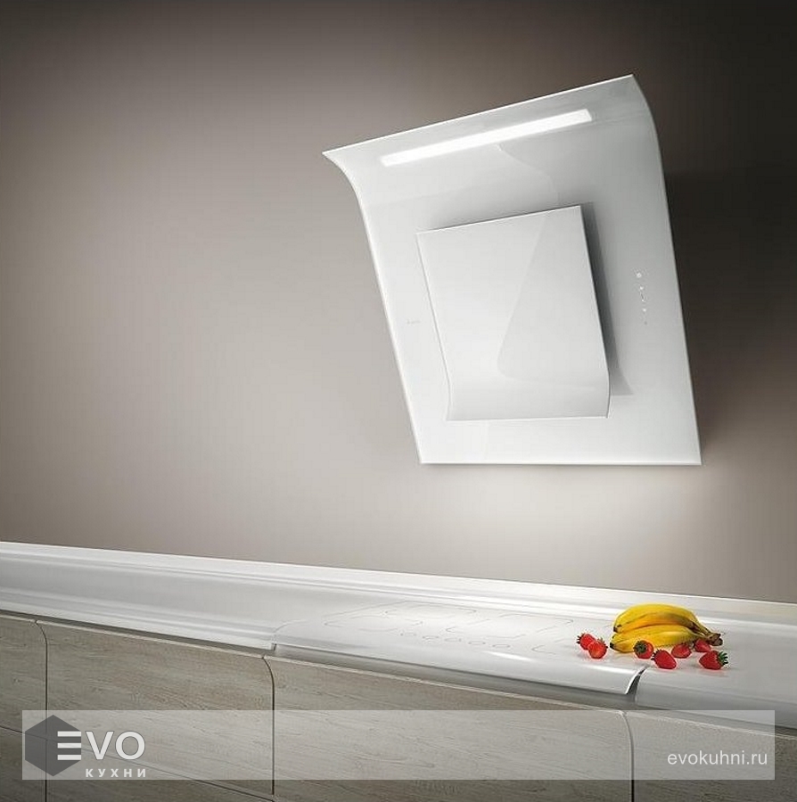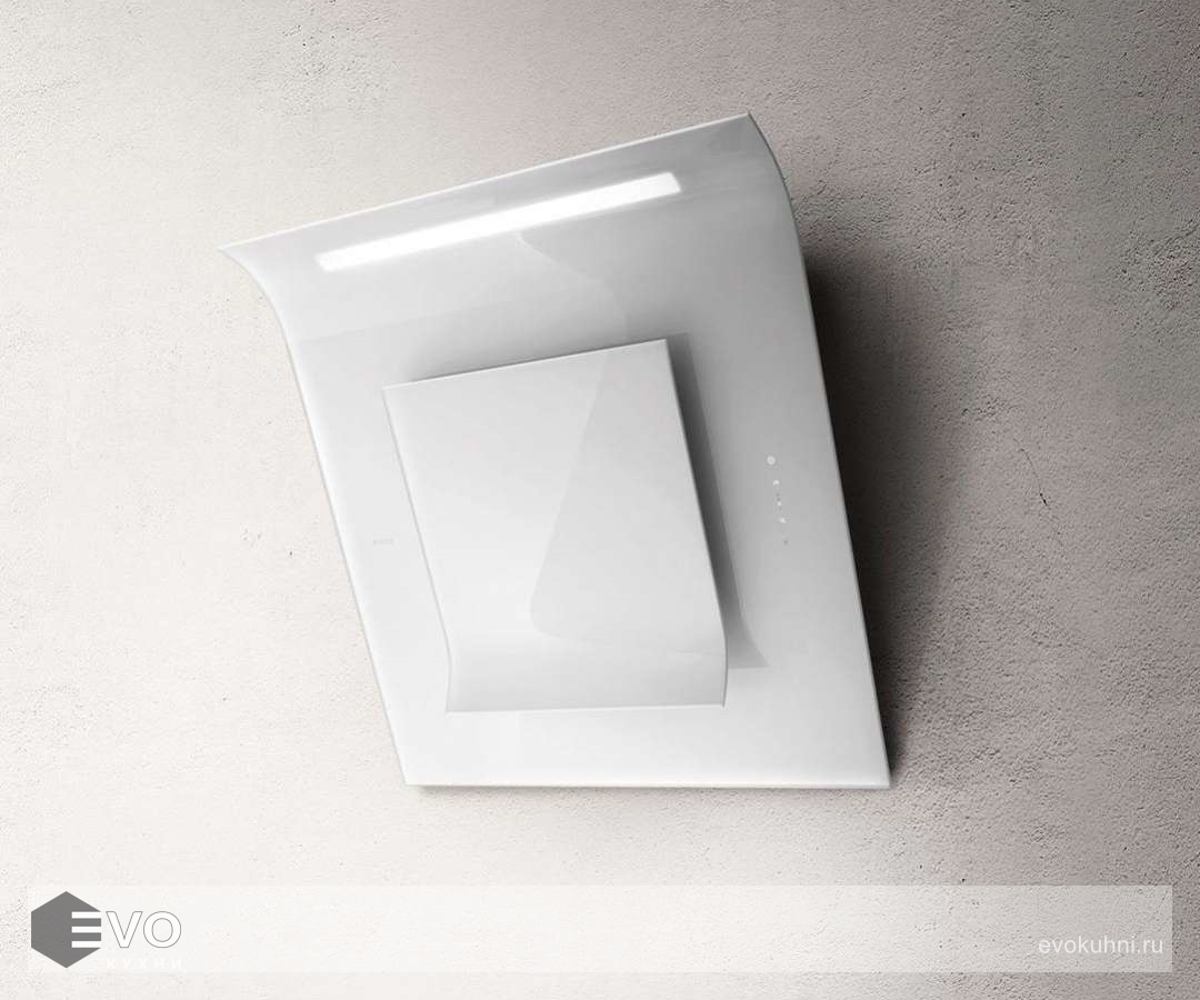 Наклонная вытяжка ELICA SINFONIA WH/F/80 выполнена в белом цвете и имеет стеклянный фасад. Сверху располагается яркая полоска неоновой подсветки. Плавные, чуть изогнутые линии являются отличительной чертой этой линейки моделей. Стильный внешний вид и универсальное цветовое решение позволяют интегрировать устройство в любой современный кухонный интерьер.