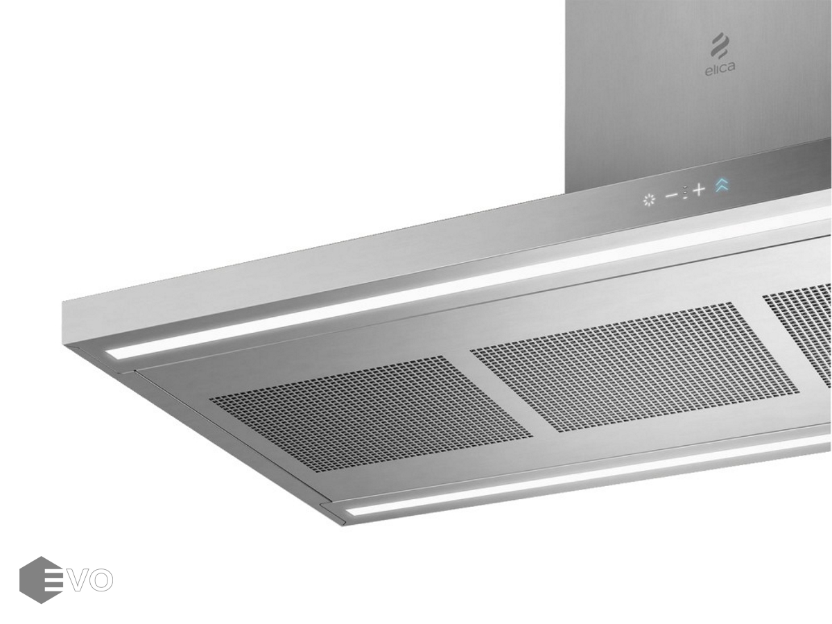 Островная вытяжка ELICA THIN ISLAND IX/A/120 из нержавеющей стали идеально подходит для больших помещений и идеально гармонирует с другой бытовой техникой. Подсветка служит не только функциональным и удобным элементом, но и изысканным дизайнерским решением.