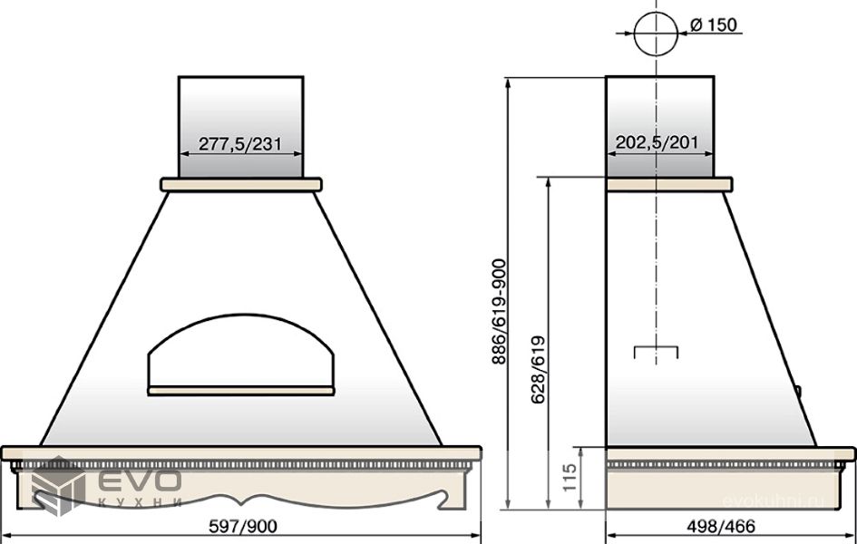 Тип вытяжки : Традиционная (пристенная)