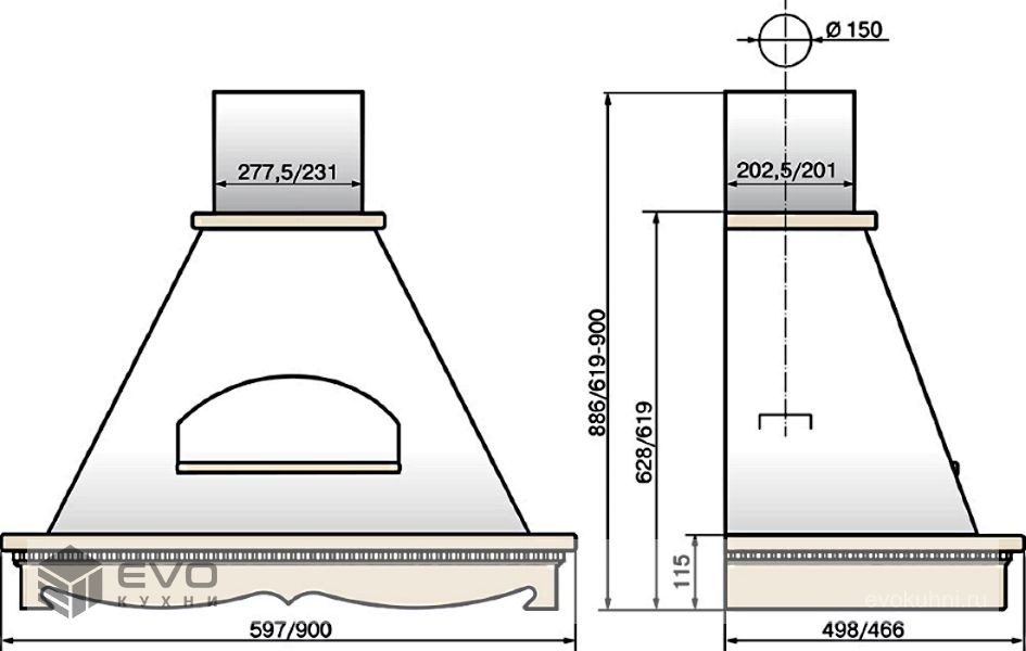 Вытяжка Elikor Бельведер 90П-650-П3Д бежевый / дуб неокрашенный