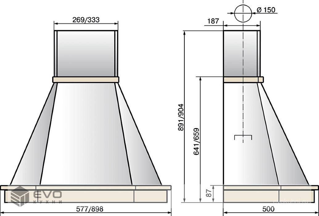 Вытяжка Elikor Камин Грань 90П-650-П3Л бежевый / дуб коричневый