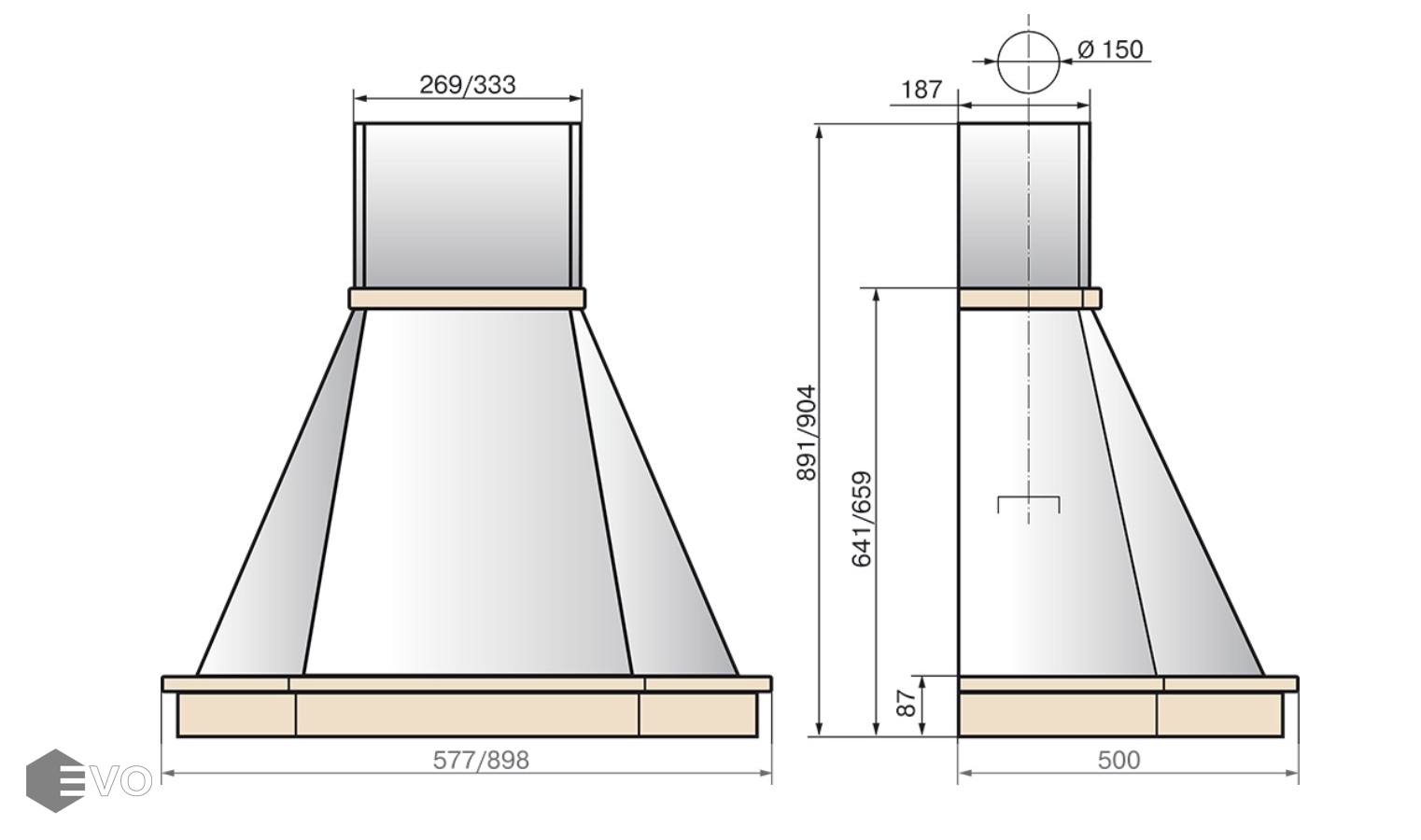 Вытяжка Elikor Камин Грань 90П-650-П3Л бежевый / дуб бежевый