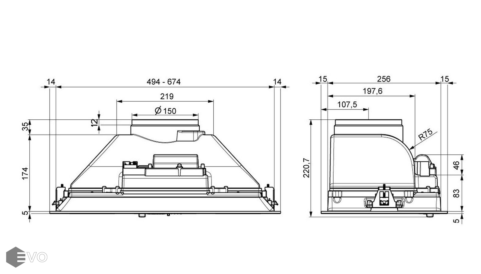Тип вытяжки : Встраиваемая (в шкаф)