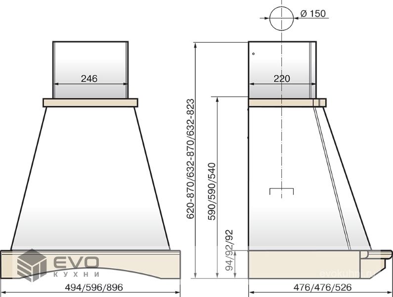 Вытяжка Elikor Ротонда 50П-650-П3Л бежевый / дуб венге