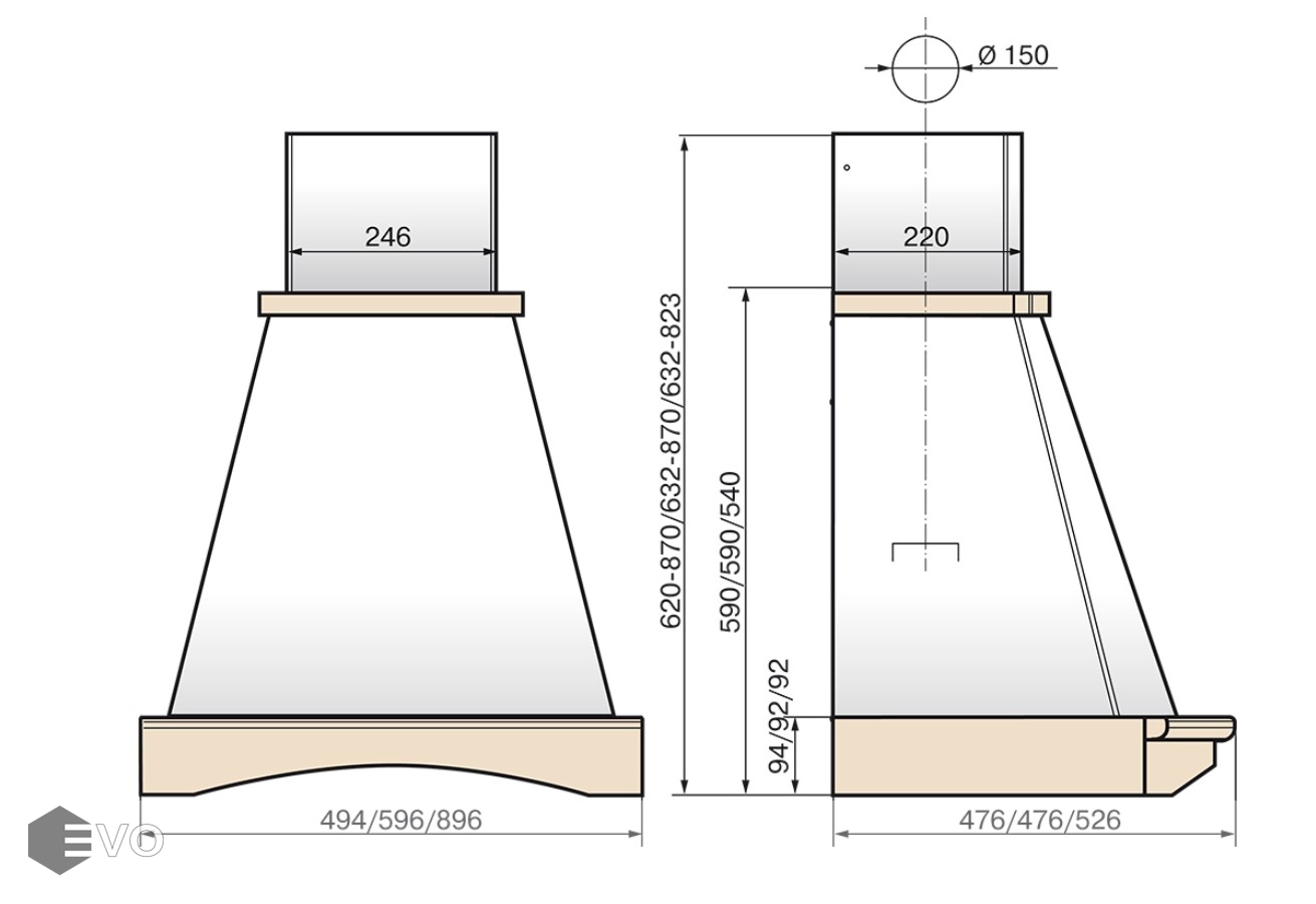 Вытяжка Elikor Ротонда 90П-1000-П3Д бежевый / дуб неокрашенный