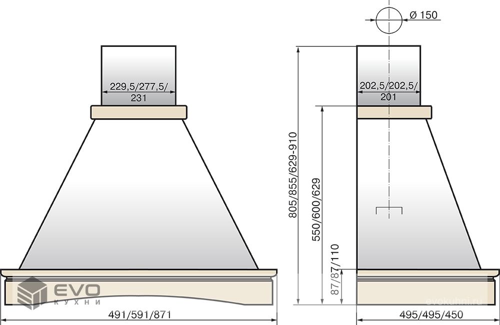 | Тип вытяжки : | Традиционная (пристенная) |