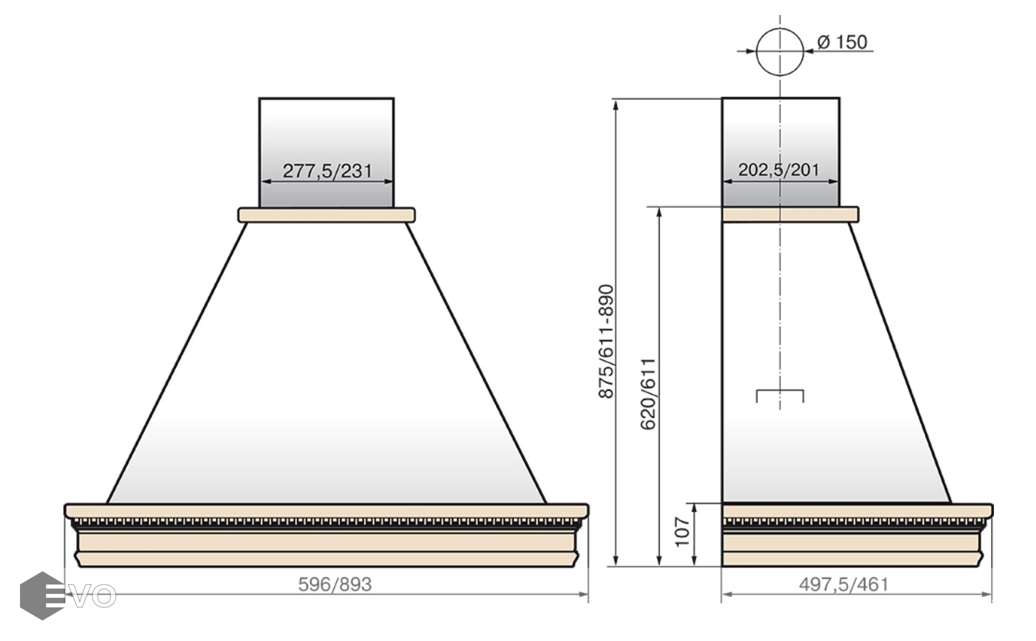 Вытяжка Elikor Вилла Луизиана 90П-650-П3Д бежевый / бук орех