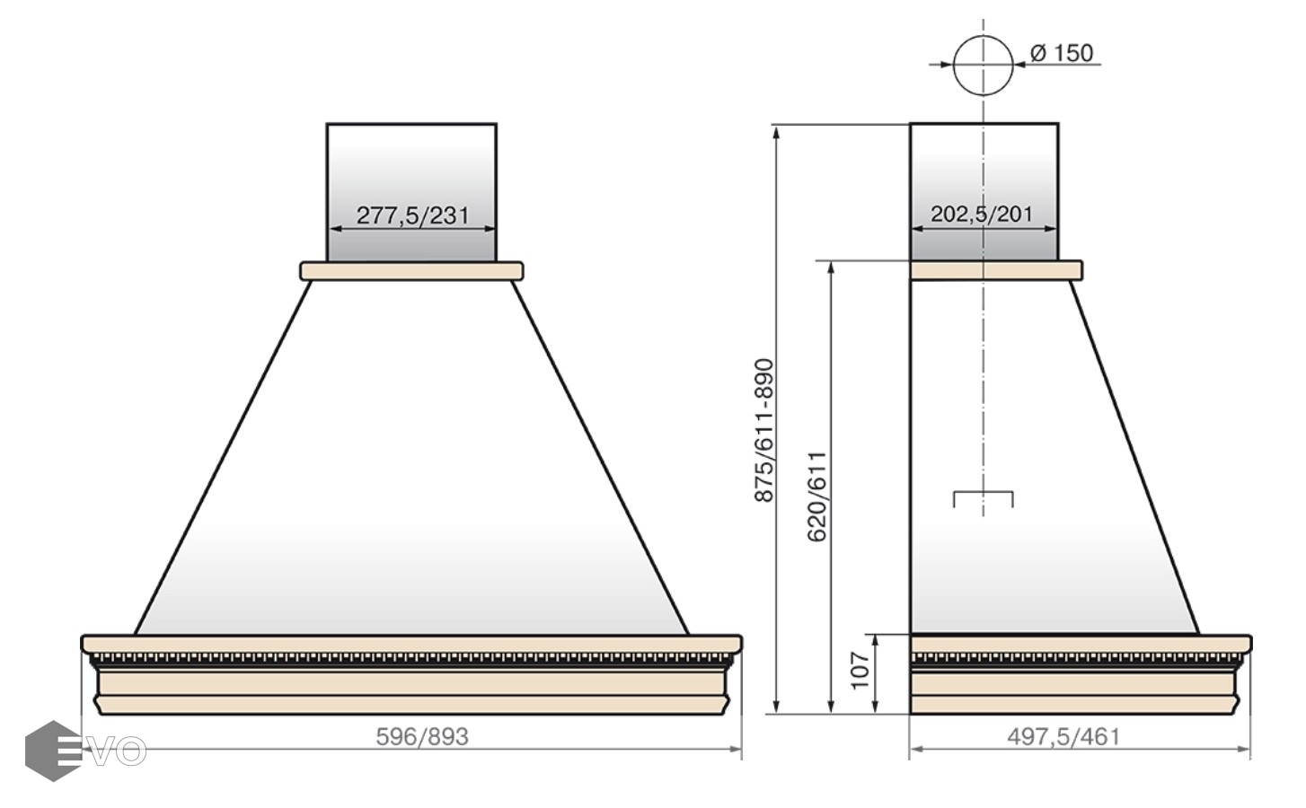 Вытяжка каминная Elikor Вилла Луизиана 90П-650-П3Г представляет собой идеальное решение для кухни в классическом стиле. Металлический корпус бежевого цвета имеет резную окантовку из дуба, придающую вытяжке более уютный внешний вид. Включение/выключение вытяжки, а также выбор нужной рабочей скорости (из 3) осуществляется при помощи ползунковых механизмов, скрытых на нижней панели устройства.