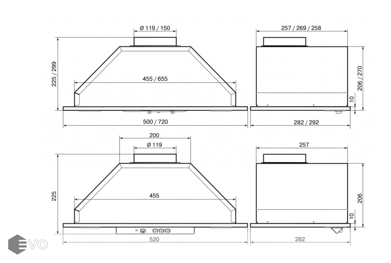 | Тип вытяжки : | Встраиваемая (в шкаф) |